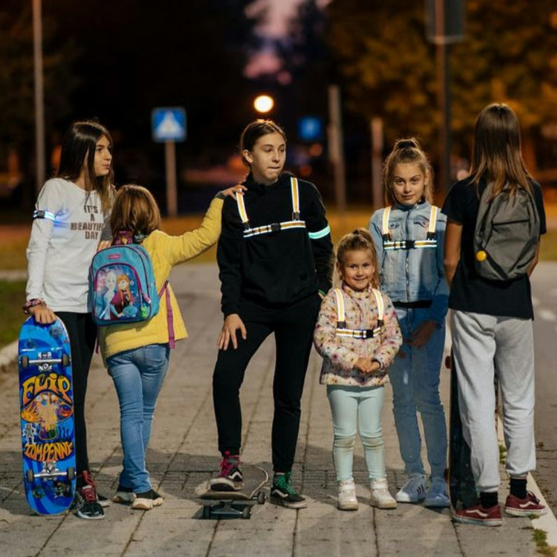 Without aid you are visible at 20-30meters, with our blinky LED producs you will be visible for up to 200meters;